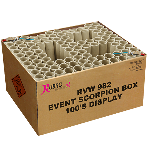 AANBIEDING Event Scorpion Box 100 Shots €99,00 €79,00 100 shots display compound box met waaiereffecten. Merk: Rubro Artikelnr: 982